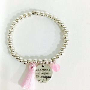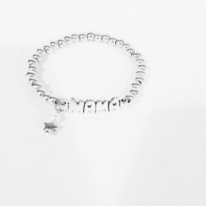 Pulsera elástica satén con inicial material zamak con baño de plata de ley